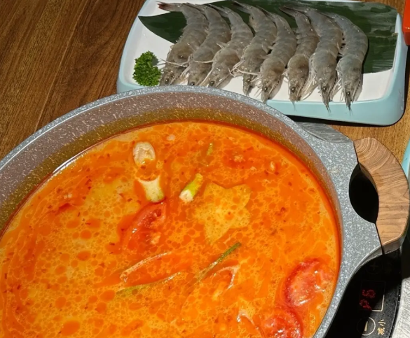 Hainan’s zokup vinegar hotpot is a dream for sour-spicy fans. The base is fermented from rice wine lees, delivering a tangy, aromatic punch with mild heat and a deep, fermented richness—pairs perfectly with seafood. Fresh shrimp, crab, oysters, abalone, and golden pomfret come alive when swished in the zokup vinegar broth, turning bouncy-tender and free of any fishiness. You can also toss in Wenchang chicken, beef, or veggies; the soup gets richer with every boil, sour-spicy and subtly sweet—great for mixing with rice or noodles too.