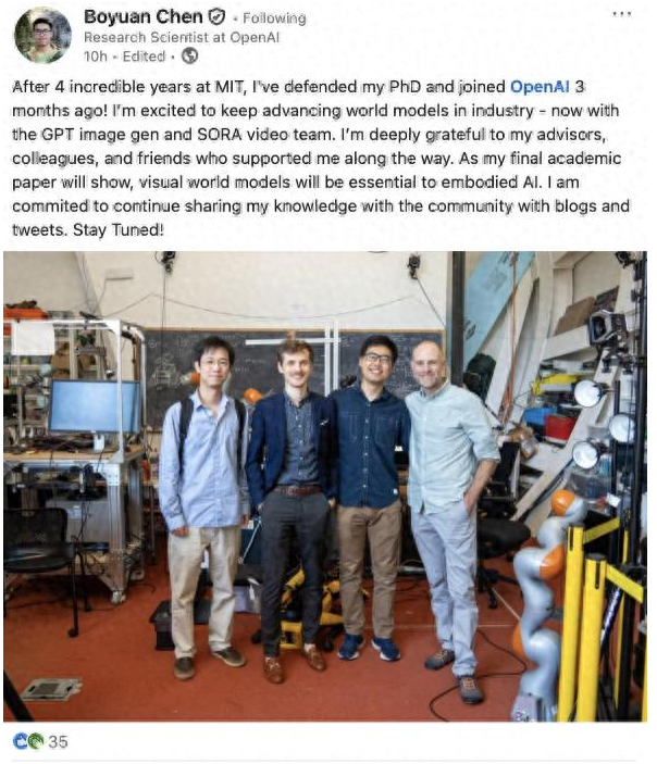 This young scholar, who secured a doctorate from one of the world’s top institutions in under four years, is also one of five core members of the GPT image generation team and a contributor to the explosive Sora video model.