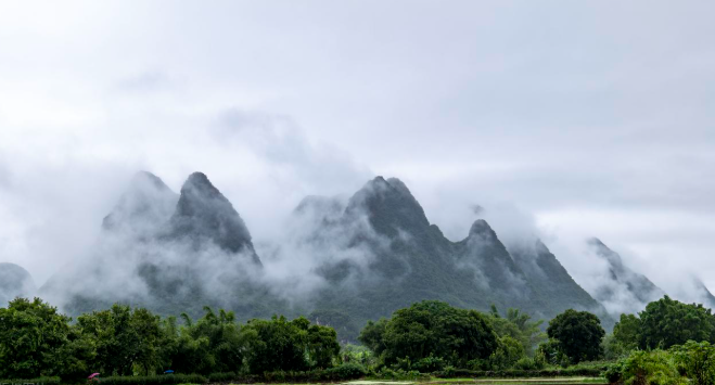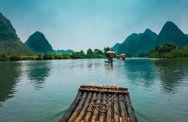 I set out from Hunan. The high-speed train yanked me from Changsha’s spicy chaos—where noodle shop plastic stools buzz with energy—and dropped me into Guangxi’s humid canvas. Changsha’s nights are loud; Guangxi slows the rhythm past Quanzhou, with steady green fields outside the window. In Guilin, rain greeted me, dimming the mountains’ glow and exposing their limestone bones. The Li River wasn’t blue but a shifting gray-green, like freshly ground ink. On a bamboo raft, I fell quiet. My friend wanted to crank up the saturation on his photos. I stopped him: “No filters. Let your eyes taste the raw view first.”