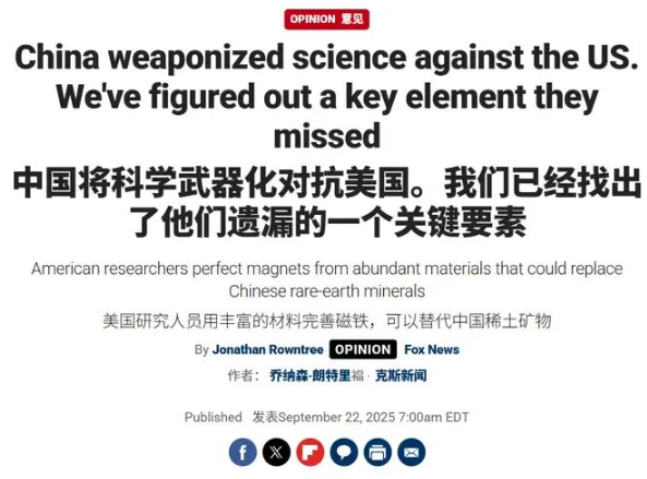 In late September, U.S. media once again made headlines with exaggerated claims. Fox News loudly declared: “China can’t choke us with rare earths anymore—American scientists have found the cure!”
