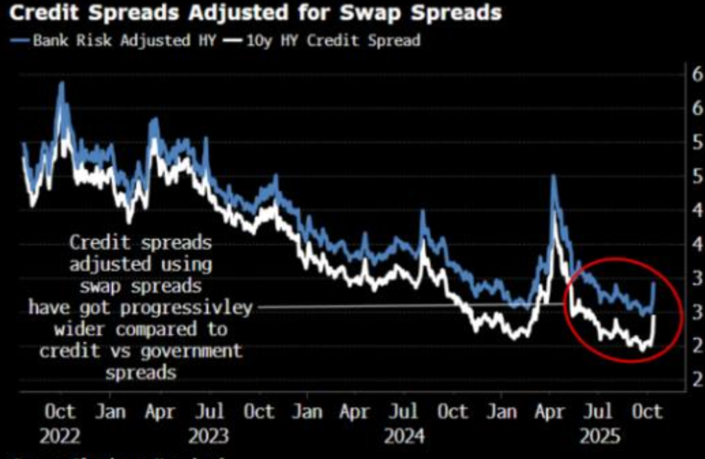 As demand for pristine collateral grows, top-tier corporate debt has started to look safer than some government bonds — at least until recently. Renewed trade tensions and high-profile bankruptcies, such as First Brands, have since widened spreads again. As JPMorgan CEO Jamie Dimon warned, “If you see one cockroach, there are probably more.”