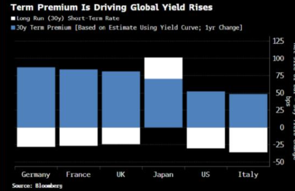 The erosion of faith in “official” collateral is evident in the sharp rise of term premiums — the extra yield investors demand for holding long-term government bonds. This trend, seen across major developed economies, pushed yields higher through most of the past year.