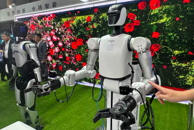 Demonstrations showcased use cases such as intelligent inspection for the energy and transportation sectors by Daohotongtai, precision wafer box handling by Youai Zhihé, and industrial embodied robots by Standard Robots.
