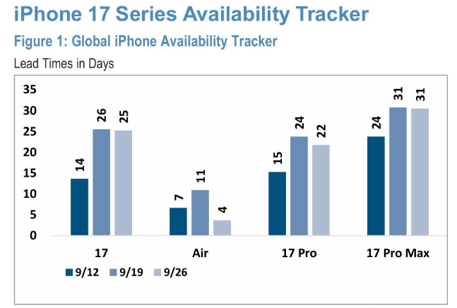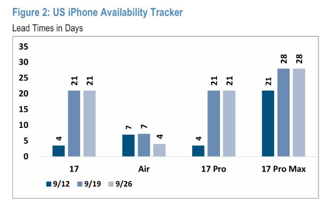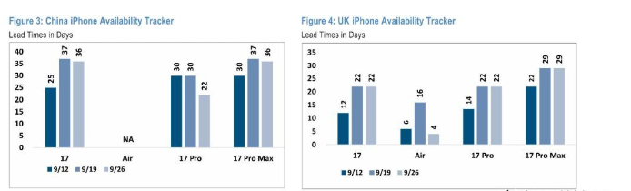 Financial reports show just how wide the gap has become. According to Jefferies, U.S. delivery times for the iPhone 17 series shortened by 40% within weeks of launch—the Pro Max fell below two days, while the base model dropped to just three days. In China, however, waiting periods soared: the base model doubled from seven to 15 days, while the Pro Max jumped to 35 days, twice the iPhone 16’s cycle.