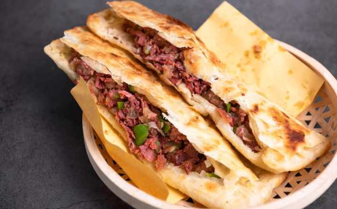 A Qing Dynasty delicacy praised by Emperor Jiaqing for its “color, aroma, and taste,” beef hooded pancake features savory beef broth-soaked pancakes. Order by weight, like “two hoods, four pancakes” (2 liang meat, 4 liang pancake), for a hearty, soul-warming meal.