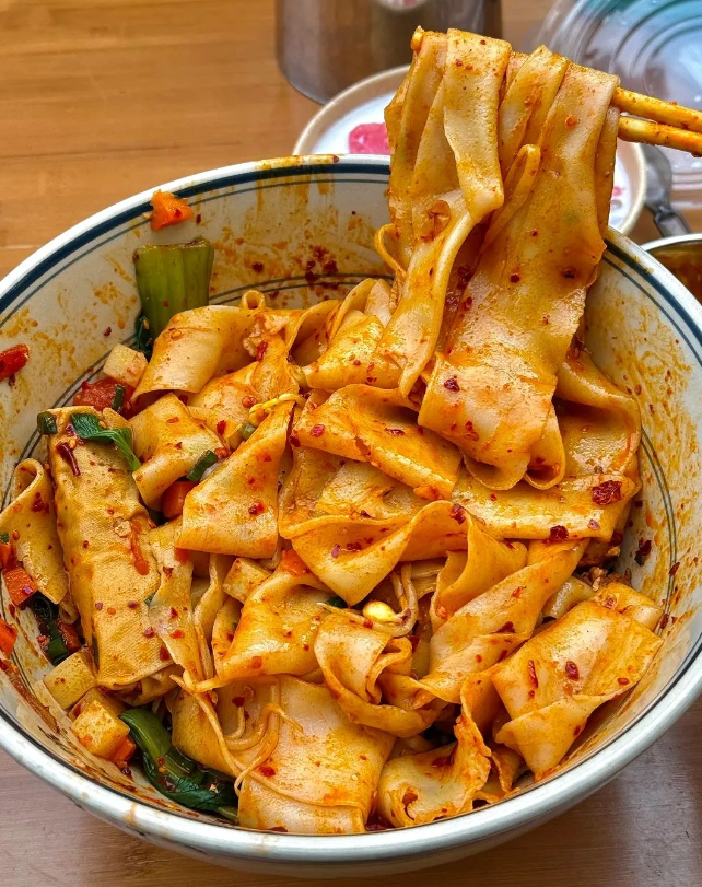 Another Shaanxi gem, Qishan saozi noodles elevate fine strands with a pork, radish, potato, and wood ear mince stew, brightened by vinegar and chili. The tangy-spicy harmony begs for seconds; it’s a hospitality essential in the Guanzhong area.