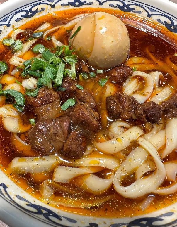 Don’t let the name fool you—Henan braised noodles are a hearty immersion, with broad strips swimming in a milky sheep bone broth alongside mutton, kelp, tofu, and glass noodles. The overflowing toppings and rich savor make it a warming winter go-to, comforting down to your core.