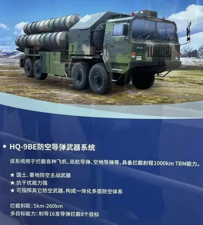 Official specs show a 260 km intercept slant range—the straight-line distance from launch to target. Actual max range, via lofted trajectory, exceeds this; for example, the HQ-16B doubles its slant range (70 km to 120–150 km). Thus, HQ-9BE likely surpasses 400 km, outranging Standard-6’s 370 km.